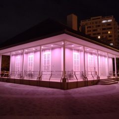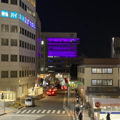 「いじめストップ!」を伝えるピンク色にライトアップします。