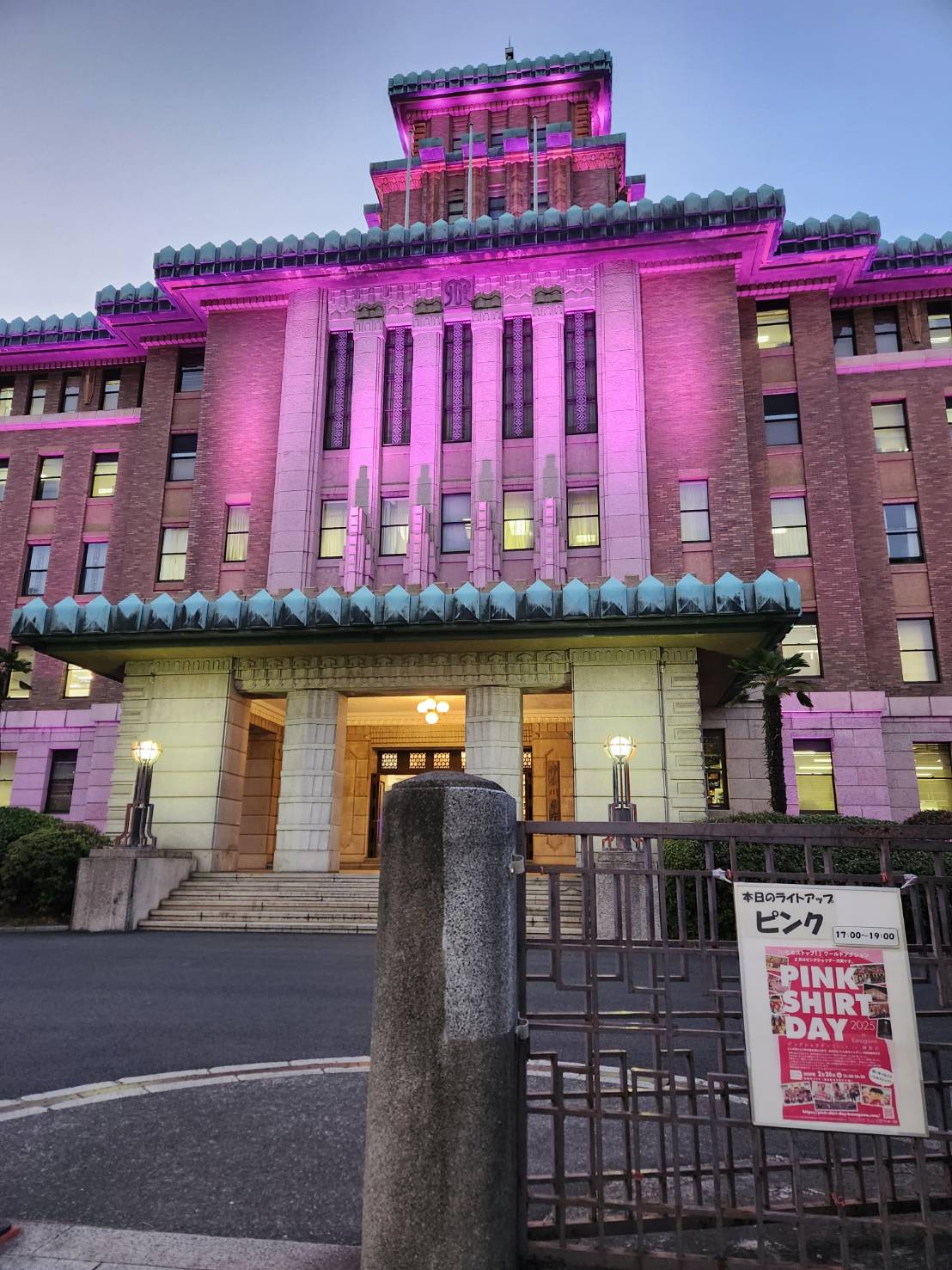 「いじめストップ!」を伝えるピンク色にライトアップします。
